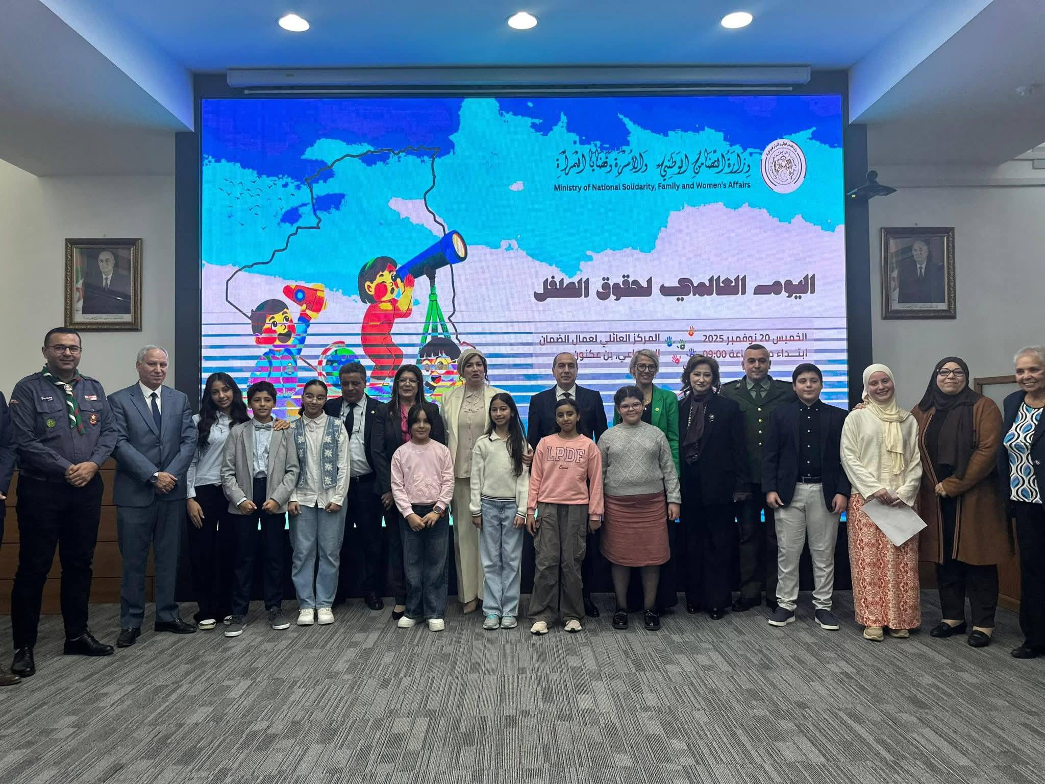 رؤساء الهيئات الوطنية وإطارات الدولة وفواعل المجتمع المدني، وبمشاركة أبنائنا الأطفال وأبنائنا من ذوي الهمم العالية، في احتفالية خاصة نظمت من طرف وزارة التضامن الوطني والأسرة وقضايا المرأة بمناسبة اليوم العالمي لحقوق الطفل، المصادف ل20 نوفمبر من كل سنة، والذي يُعد مناسبة هامة للتذكير بحقوق الأطفال وضمان حمايتهم في كل المجالات.