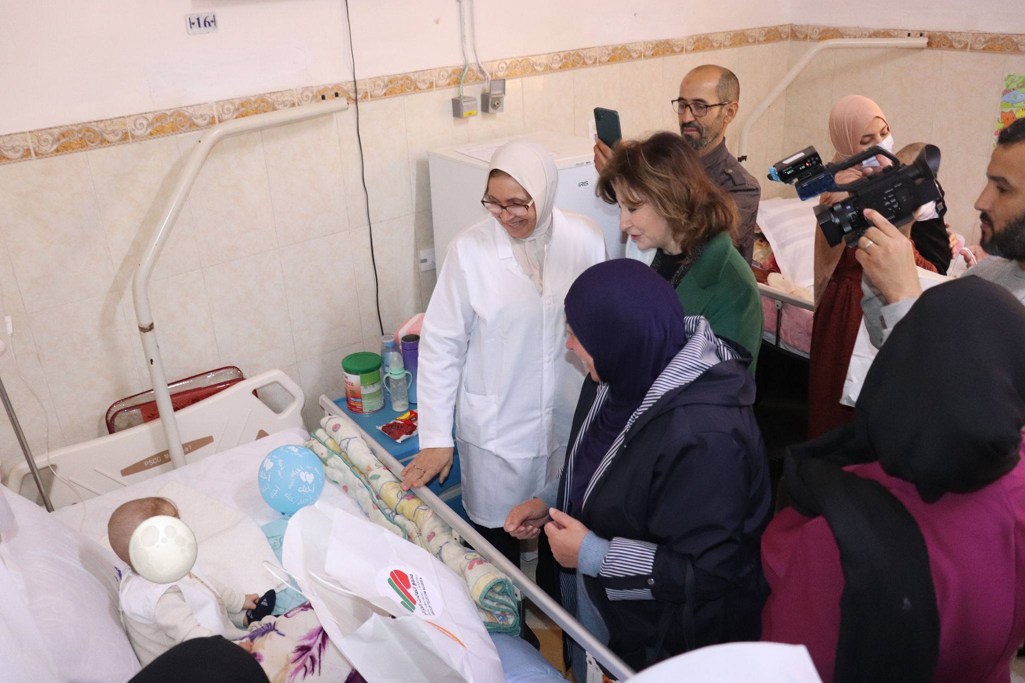 وخلال هذه الزيارة طافت المفوضة الوطنية مرفوقة بإطارات من الهيئة الوطنية لحماية وترقية الطفولة مع إطارات المستشفى والطاقم الطبي مصلحة "المروج" المخصصة لعلاج الأطفال المصابين بالأورام و وحدة تصفية الدم للأطفال ثم استعجالات طب الأطفال فوحدة الطب الداخلي و كذا وحدة "الإقامة القصيرة"، حيث تم تقديم هدايا و ألبسة العيد لهؤلاء الأطفال المرضى مقدمة بالتنسيق مع مجمع اتصالات الجزائر في لفتة إنسانية ترمي إلى التخفيف من معاناتهم و إدخل الفرحة في نفوسهم خاصة وأنّها تتزامن مع الأيام المباركات وهي العشرة الأواخر من الشهر الفضيل وأيام فقط قبل حلول عيد الفطر المبارك.