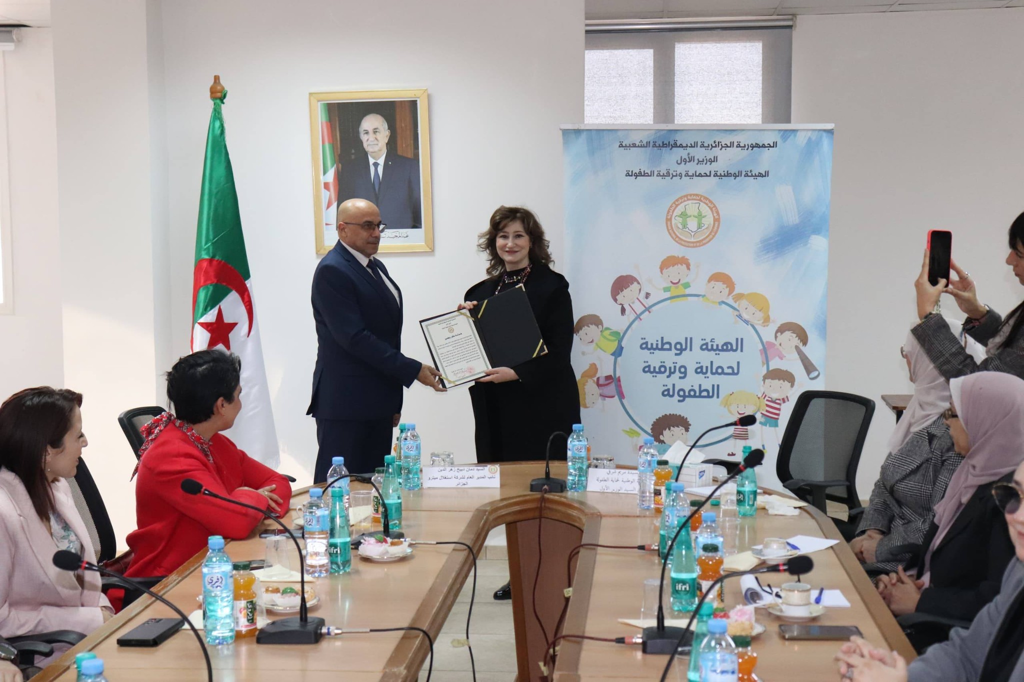 استقبلت المفوضة الوطنية لحماية الطفولة السيدة #مريم_شرفي الأربعاء 17 ديسمبر 2025 بمقرّ الهيئة الوطنية لحماية وترقية الطفولة نائب المدير العام لشركة استغلال مترو الجزائر