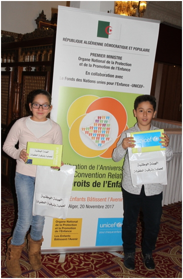 تحت شعار "الأطفال يصنعون المستقبل"، نظمت الهيئة الوطنية لحماية وترقية الطفولة بالتنسيق مع مكتب صندوق الأمم المتحدة للطفولة بالجزائر (UNICEF)، يوما إعلاميا بمناسبة الاحتفال باليوم العالمي لإمضاء اتفاقية حقوق الطفل سنة 1989، المصادف لـ 20 نوفمبر من كل سنة.